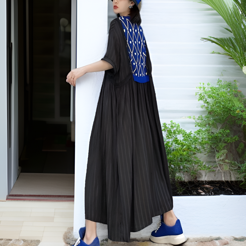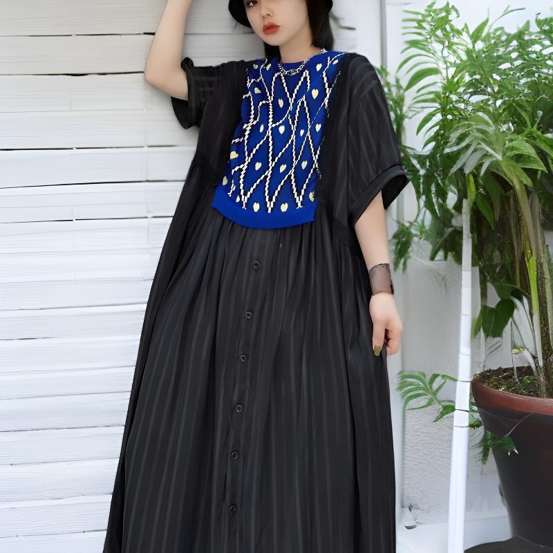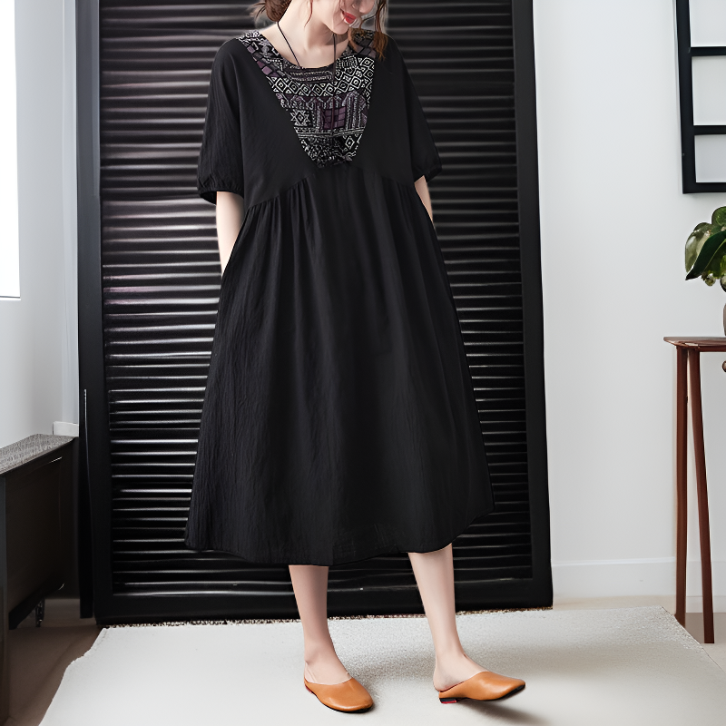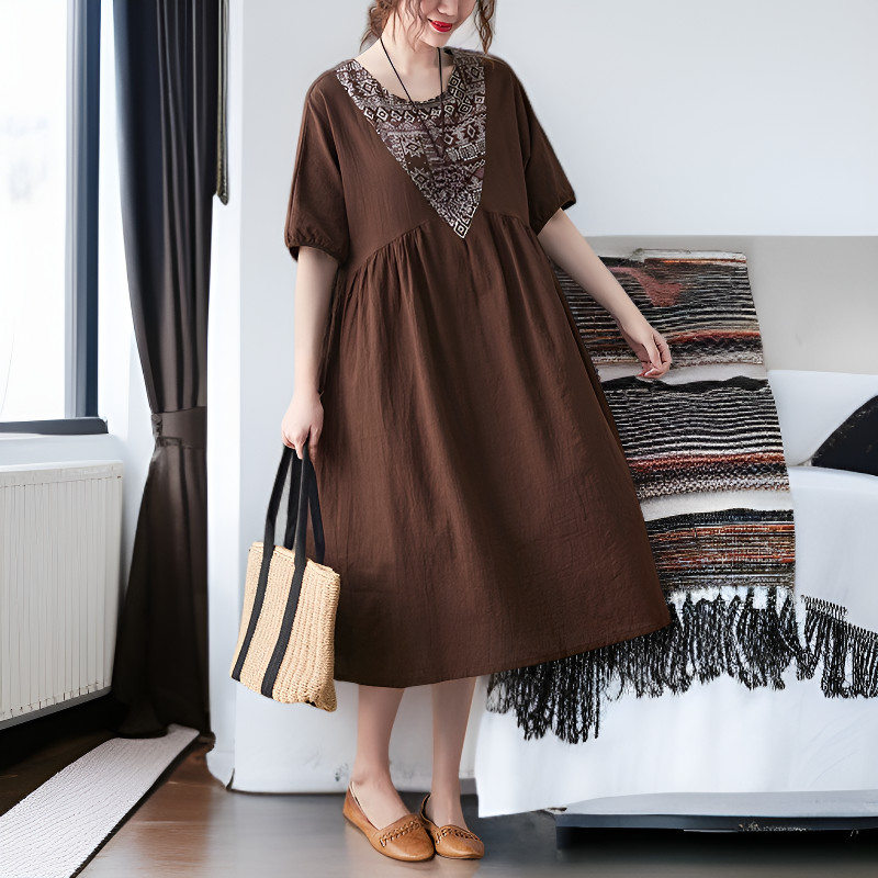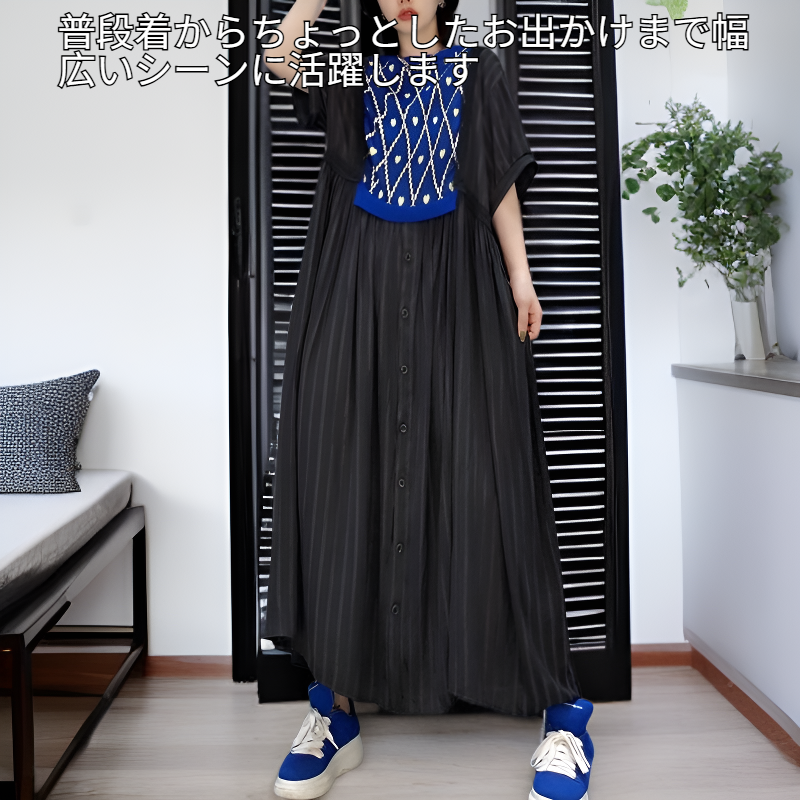 夏用レディースルーズワンピース 中年のお母さん専用ウエストワンピース