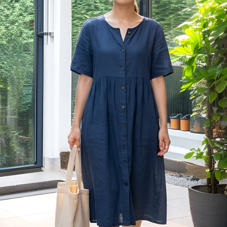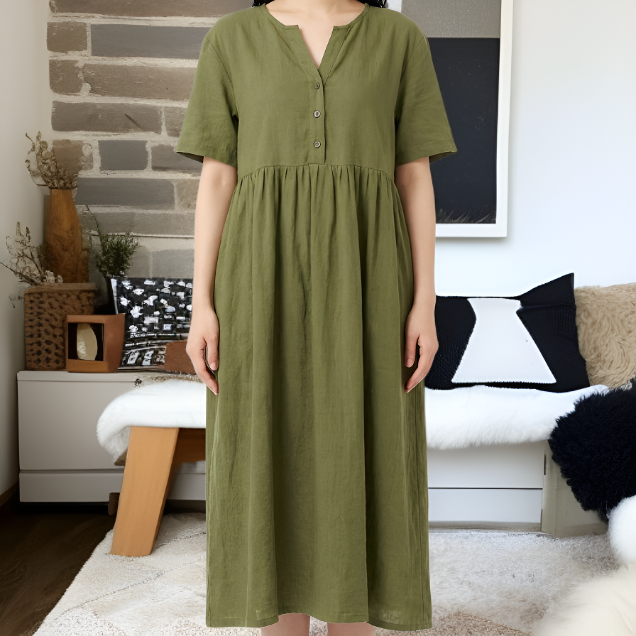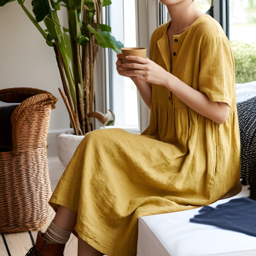 夏のカラフルスリム綿麻ロングワンピースレディース新作半袖欧米風